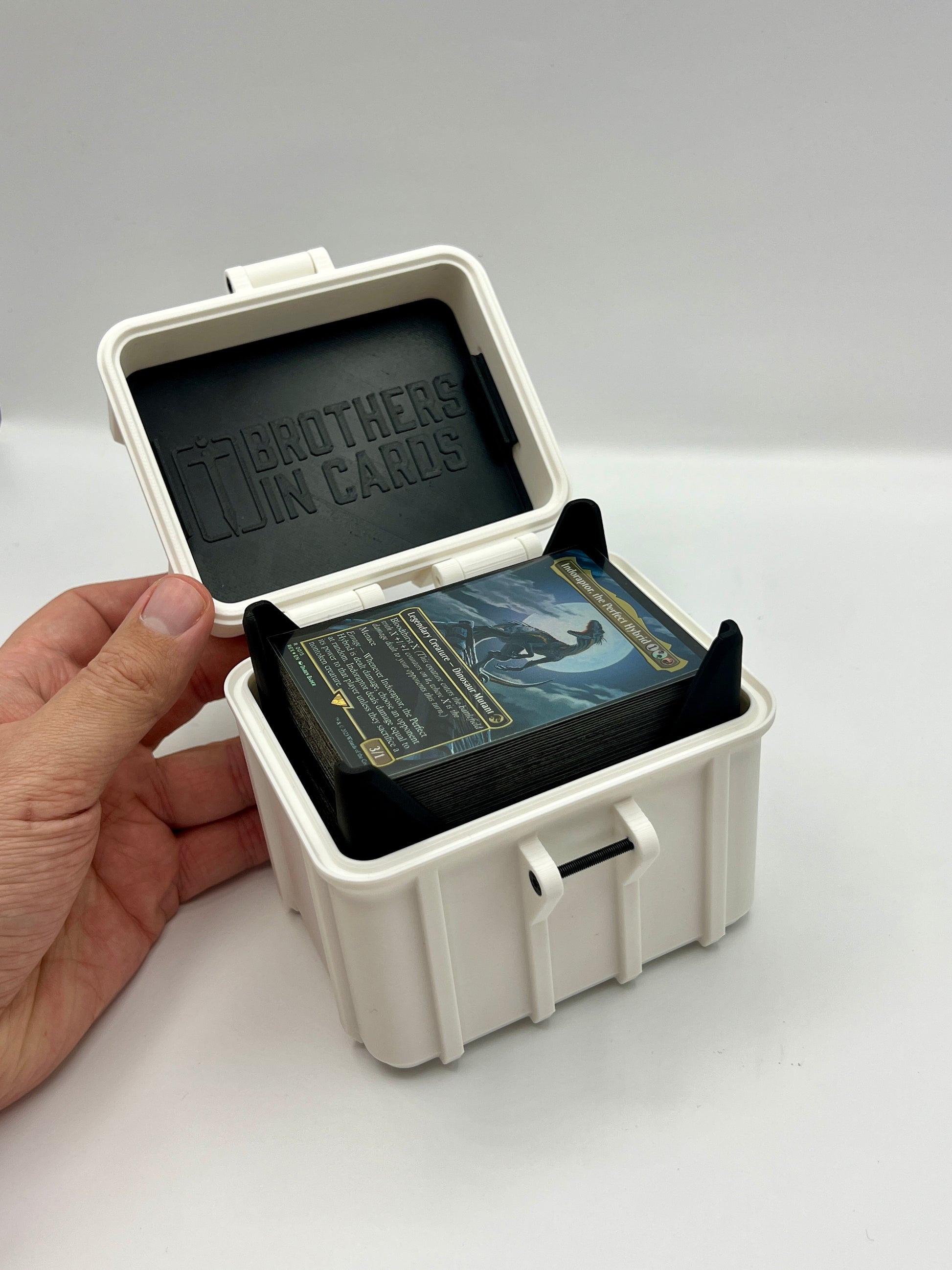 Thoughtfully designed by commander players for commander players, these boxes are expertly engineered to stack securely with other compatible Brothers in Cards deck boxes, offering a seamless and professional storage solution for dedicated collectors.